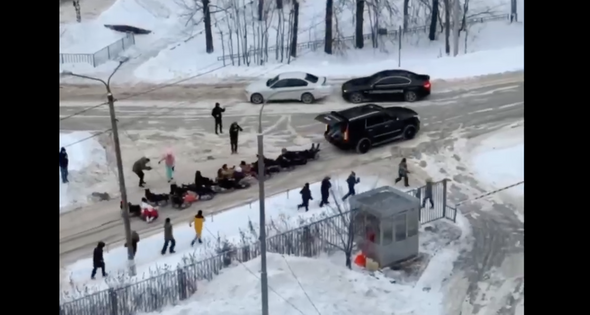 В Подмосковье полиция разыскивает водителя, который привязал к машине более 10 тюбингов и катал на них детей