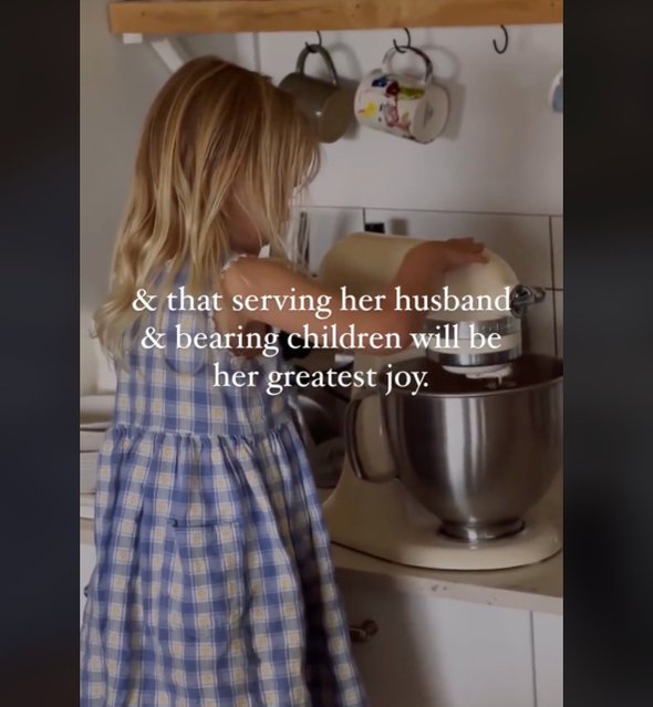 Эту же жизненные установки Жасмин планирует передать своей дочери. В ролике она обещает ей рассказать, что «зависеть от мужчины — абсолютно нормально». «В мире, полном женщин, которые учат своих детей, что их главная цель — это выучиться в университете, найти работу и заработать деньги, я учу мою маленькую девочку жить размеренной жизнью библейской женщины, которая хочет иметь мужа и хорошую семью, которым она будет ежедневно служить», — говорит Жасмин.