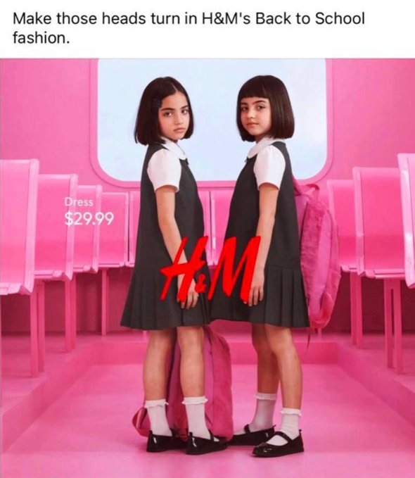 Шведская компания H& M извинилась перед покупателями и удалила снятую для австралийского рынка рекламу школьной формы с двумя девочками на картинке и слоганом: «Заставь их головы повернуться тебе вслед». Об этом сообщает CNN.