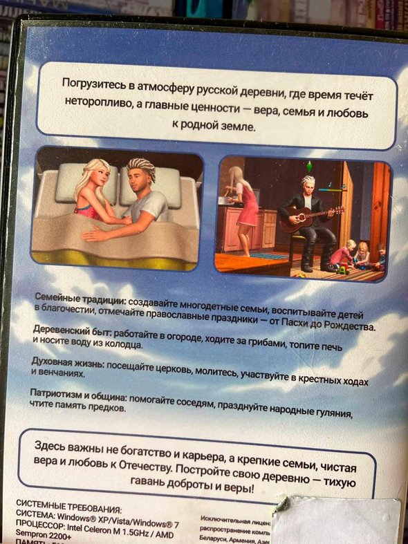 В Санкт-Петербурге в одном из неназванных магазинов покупатели обратили внимание на диск с компьютерной игрой «The Россияне». Как сообщает тг-канал «Креатив со звездочкой», в выпуске особой модификации The Sims персонажи симулятора очень похожи на исполнителя SHAMAN и Екатеринe Мизулину.