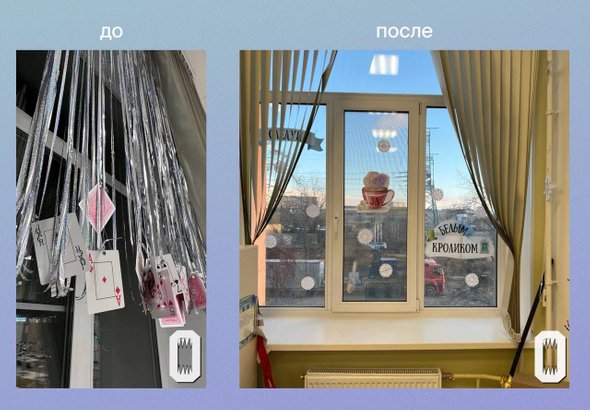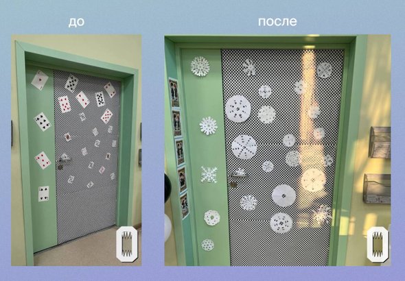 Но буквально на следующий день, зашедшая в кабинет завуч «потребовала убрать все карты из-за пропаганды азартных игр». Красно-черные украшения и карты заменили на снежинки, у нанизанных на нитки «пик» и «треф» отрезали хвостики, чтобы получились просто узоры.