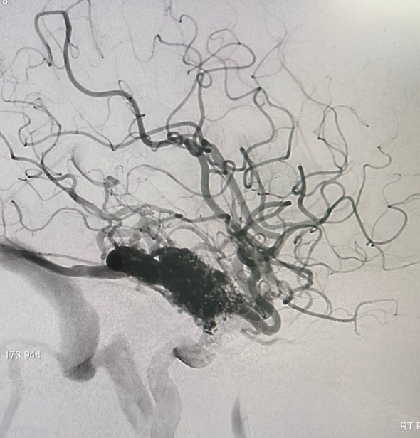 «Артериовенозная мальформация лечится методом эмболизации — введением в поврежденный сосуд специального вещества для заклеивания места разрыва. Нейрохирурги выполнили процедуру тонким катетером с ювелирной точностью. Операция длилась три часа и позволила „заклеить“ кровоточащий сосуд, снизив риск повторных кровотечений», — рассказал завотделением рентгенэндоваскулярной диагностики и лечения медучреждения Михаил Комиссаров.
