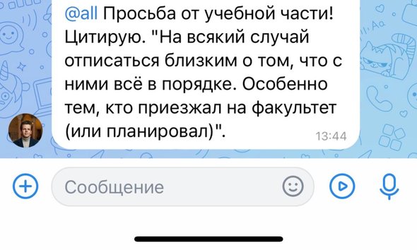 В студенческом чате молодых людей попросили предупредить родственников, что с ними все в порядке.