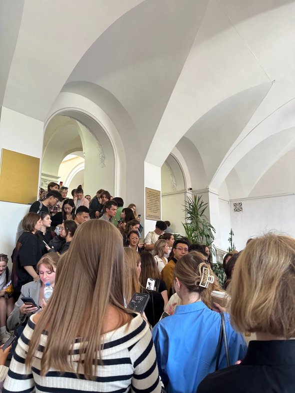 По словам девушки о перестрелке в офисе Wildberries, произошедшей в соседнем бизнес-центре, они узнали из новостей. «Нас заперли, потому что в Романовом переулке устроили стрельбу, но об этом мы узнали из новостей. Я зашла в 12:30 на факультет, видела, что много полицейских машин с мигалками заезжают в наш двор, но не придала этому значения. Впустили меня в универ нормально. Один преподаватель сказал, что занятия продолжаются в обычном режиме, у кого пара, идите. Среди студентов нет паники — просто никто ничего не понимает, все снимают и просто ждут. Сейчас всех желающих выпустили. Занятия продолжаются», — рассказала «Мелу» одна из студенток.