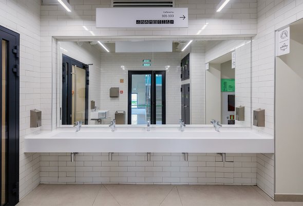 Помните, перед входом в столовую всегда была слепая зона с для мытья рук, куда, впрочем, никто не заходил? Теперь это место выглядит так.