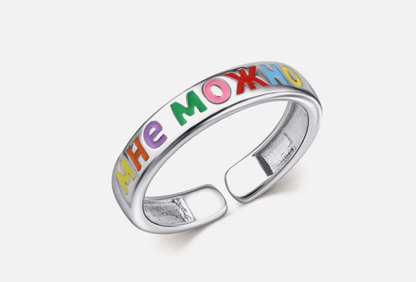 Серебряное кольцо «Золото русских» с дерзкой разноцветной надписью «Мне можно» — вполне себе альтернатива модным у подростков цветным татушкам на кистях рук и пальцах. Ну или промежуточное звено на пути к ним.