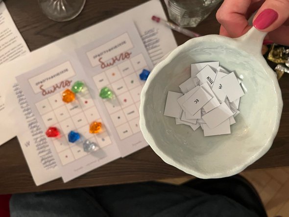 Кроме диктанта проводим орфоэпическое бинго или похожую активность на общую грамотность, где гости объединяются в команды и знакомятся, как в лагере в первый день. Взрослым этого очень не хватает.