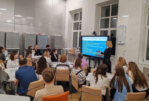 В прошлом учебном году неделю чтений мы посвятили Чехову. С медицинским 10-м классом для конференции мы читали рассказ Антона Павловича «В аптеке», с медийщиками — повесть Маргариты Симоньян «Водоворот».