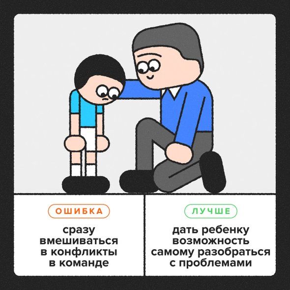 10. Если у ребенка возник конфликт с тренером или командой, важно не мешать ему решить его самостоятельно