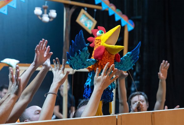 С возникновением кино театр не умер, а воспринял его и сделал одним из собственных выразительных средств. То же самое произошло сейчас и с цифровыми технологиями. Есть у нас такой спектакль — «Госпожа Метелица». В нем мы используем технологию, которая называется видеомэппинг[1]: например, когда необходимо, чтобы кукла взлетела. Актер этой куклой уже не управляет, а для зрителя ничего не меняется. У нас есть спектакли с роботами, где на сцене с ними взаимодействуют обычные куклы и актеры, и это всё равно остается театром.