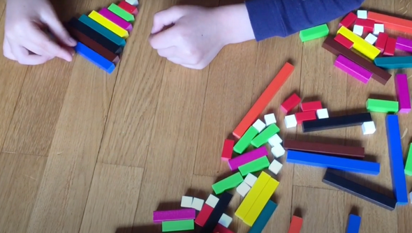Каждое семейство отображает кратность чисел. Так, например, к красному семейству относятся числа, которые делятся на 2, к зеленому — числа, которые делятся на 3. Среди заданий, которые можно выполнять с этими палочками, — сделать из двух маленьких палочек одну, которая была бы равна уже имеющейся в наборе большой палочке (например, коричневая палочка 4 см + темно-зеленая 6 см = оранжевая палочка 10 см).