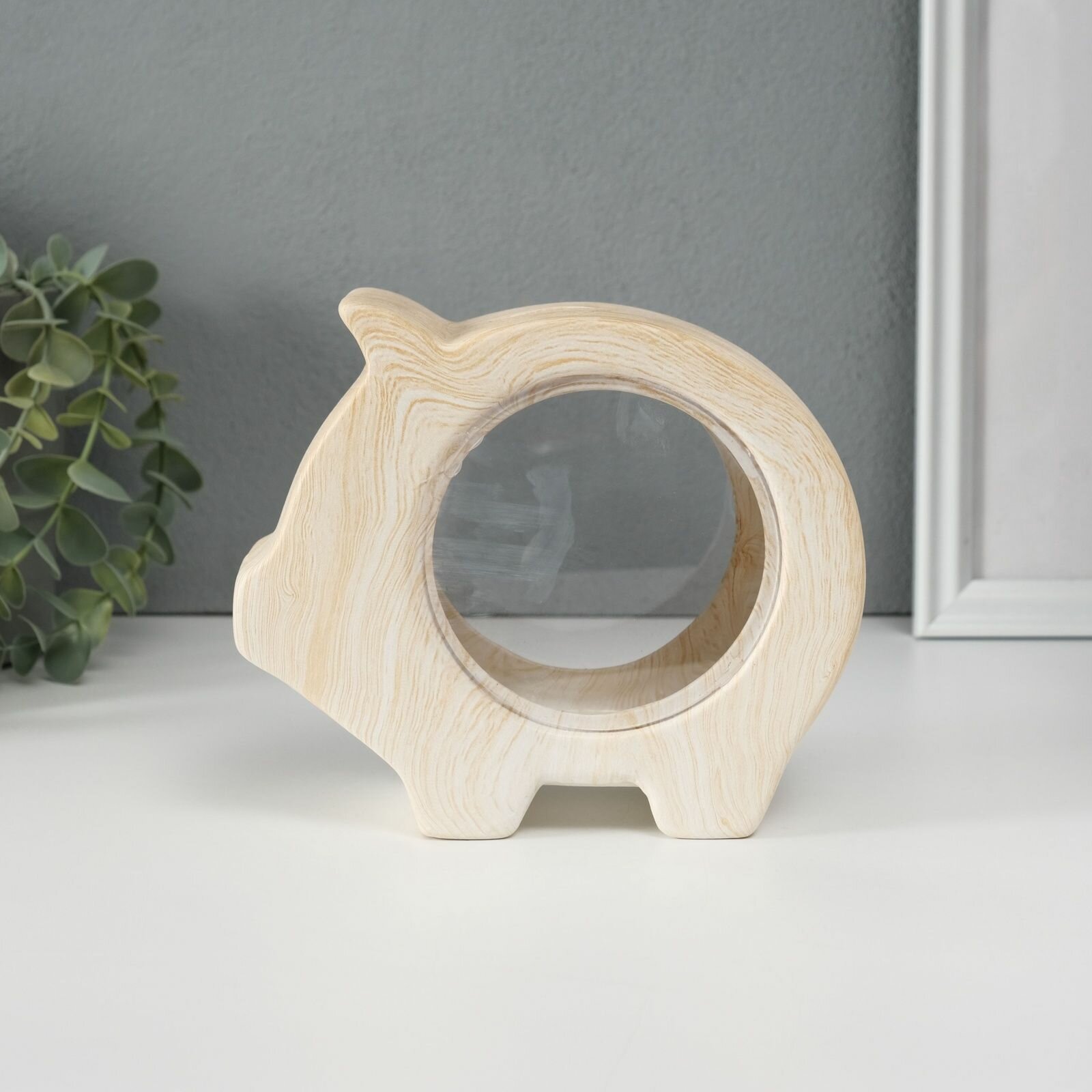 Еще один вариант для бежевых мам. На этот раз — в более минималистичном варианте. Как и предыдущая копилка, эта свинья сделана из керамики, стилизованной под дерево, — но без кожаных элементов. Такая копилка точно не испортит стильной дизайн-концепции и отлично встанет на книжную полку или на рабочий стол.