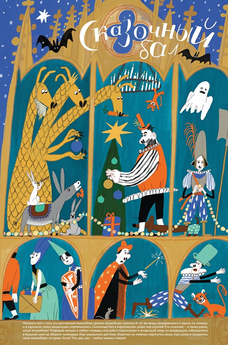 Классический адвент в виде плаката. Вешаем на стену, открываем окошки и проходим квест. В основе задумки — книга хулиганских сказок лауреата множества книжных премий Аси Кравченко, а иллюстрации нарисовала финалист самой значимой в книжном мире Болонской детской книжной ярмарки Юля Сиднева.