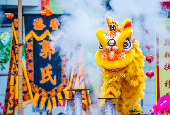 В Китае, согласно древнему мифу, накануне Нового года на землю спускается рогатое чудовище, похожее на быка, по имени Нянь (в переводе с китайского «年» (nián) слово означает «год»). По легенде, Нянь выходит из моря и начинает пожирать скот, зерно и запасы, а иногда и людей. Чтобы защититься, в ночь перед Новым годом принято класть при входе у двери угощение — считается, что чем больше будет еды, тем добрее станет зверь. А чтобы Нянь не нападал на людей в городе, используются отпугивающие красные украшения: фонарики, наклейки и свитки с благословениями. А также люди запускают фейерверки и бьют в барабаны, звук которых отгоняет злого духа.