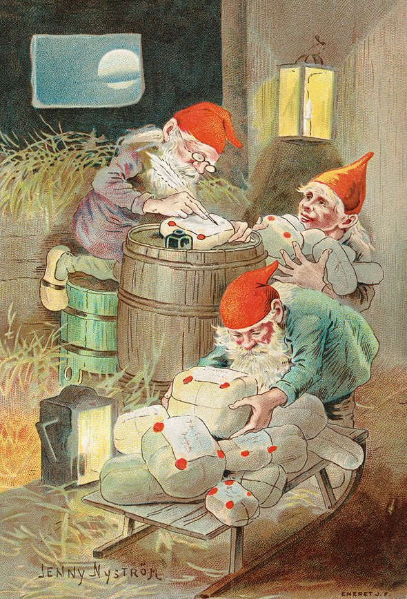 В Исландской культуре не один дух Рождества, а целых 13. Как же так получилось? Все началось в XVII веке, когда появилась «Поэма о Гриле» — ужасной женщине-тролле, матери гигантских Святочных ребят, которые представляют угрозу для детей. Страшная Грила, которая ела непослушных детей, встречалась в фольклорных текстах и раньше — первые письменные упоминания о ней относятся к XII веку, но в поэме ее впервые связали с Рождеством и описали ее детей.