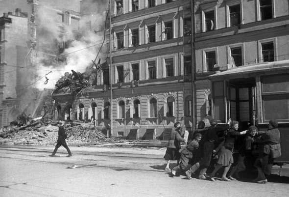 …Сейчас опять пошли сплошные тревоги. Над головой воет немецкий самолет, бьют зенитки, масса разрушенных домов и улиц. Все трамвайные маршруты перепутаны. Народ голодает, армия голодает…