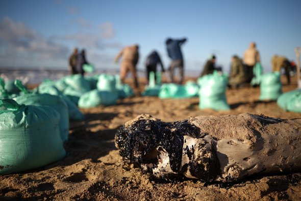 «В начале января, когда выходили на берег, — говорит Наталья, — часто сталкивались с чувством какой-то безнадежности. Вот пляж, его несколько дней подряд чистили от мазута, люди старались, работали на износ. А одним утром случается шторм, на берег выносит новый мазут, и от наведенной чистоты не остается и следа. Снова на берегу черная жирная полоса, снова он весь в несчастных птицах. Сейчас, благо, уже не так критично дело обстоит. Уже вырыты заградительные рвы, сделаны насыпи — они сберегают труд волонтеров».