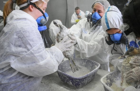 Пойманных птиц волонтеры с пляжей передают в штабы, где их осматривают, моют, сушат и реабилитируют. После всей помощи, что оказывают волонтеры, птиц направляют на передержку. Там они должны дождаться линьки и сменить оперение — лишь потом их можно отпускать на волю. Работа в таких штабах построена по принципу конвейера.