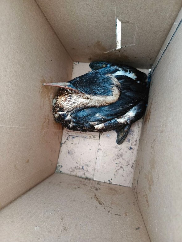 С 17 декабря Наталья с мужем практически каждый день работают на пляже — поднимают с песка ослабленных птиц, в основном длинношеих чомг, от клюва до лап черных и липких от мазута.