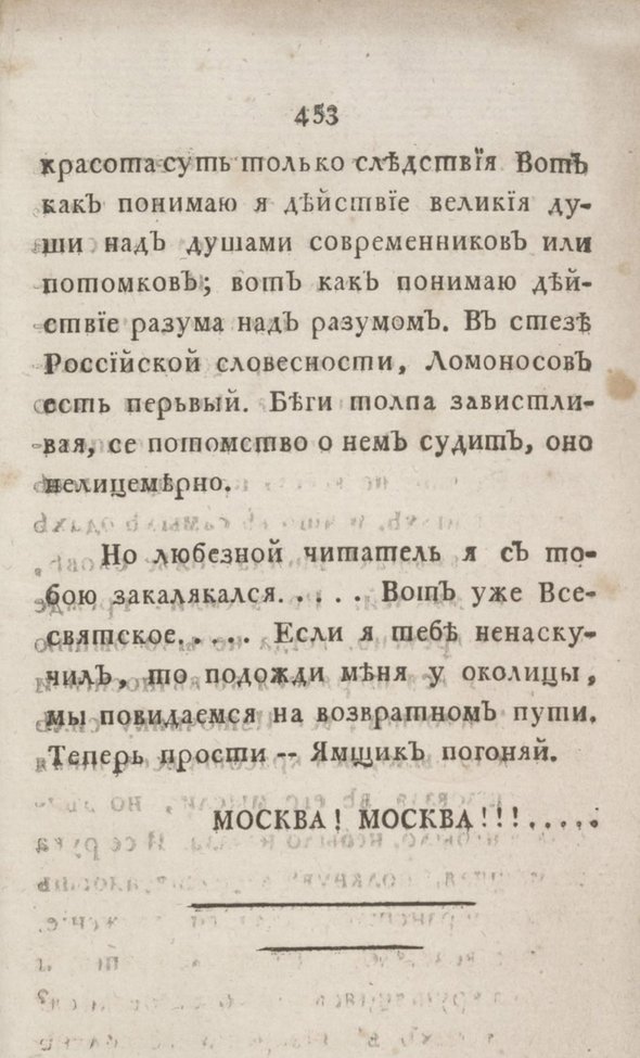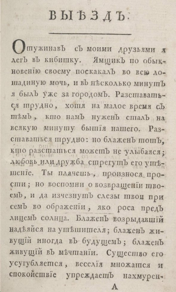 Отсюда ясно, почему слог Радищева так сложен. Тяжеловесную смесь церковнославянизмов с косвенными цитатами из трудов французских просветителей было трудно понять даже современникам. Да-да, язык, которым написано «Путешествие из Петербурга в Москву», был непонятен даже в XVIII веке — куда уж нам!