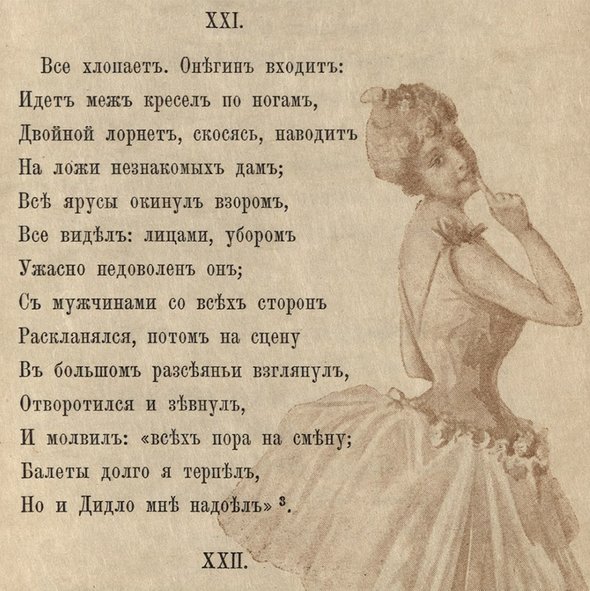 По объему эти отступления нисколько не меньше любовной линии, и для Пушкина они важны. Поэтому мы обсуждаем не роман, а роман в стихах — «дьявольская разница», как выразился поэт в письме Вяземскому.