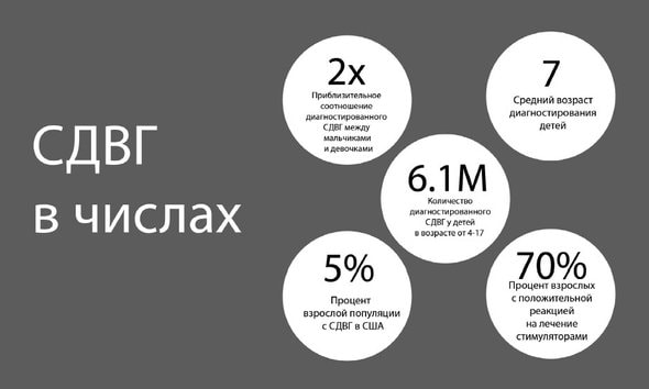 По данным метаанализа 2007 года, СДВГ диагностируется примерно у 5–10% детей и подростков, а также у 2,5–5% взрослого населения по всему миру. Про распространенность в России сказать сложно, так как переход на международную классификацию болезней 11 пересмотра в 2024 году только завершится, и диагноз, описывающий похожую симптоматику, будет отображен не только в детском разделе. А пока статистика у взрослых не собирается, и остается полагаться только на мировой опыт.