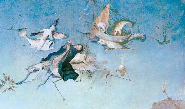 Есть гипотеза, что это немного аморфное чудовище могло быть навеяно знаменитой картиной Босха «Искушение святого Антония», а точнее, одним ее фрагментом. Вот такое странное с головой волка или оборотня существо, из которого торчат то ли ветки, то ли жала ― может быть, как у Гоголя, скорпионные. На нем монах в черной рясе и распластанная лягушка. Такой средневековый иконографический образ мог, как предполагается, стать для Гоголя прообразом этого чудовища.