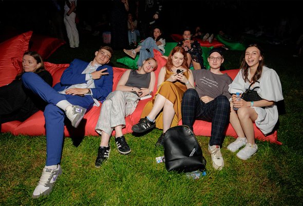 На входе в Парк Горького нарядные толпы выпускников сразу разделились. Одни сняли обувь и принялись играть в пляжный волейбол — в песок полезли прямо в шифоновых платьях и брюках со стрелками. Вторые сразу отправились во все тяжкие — начали танцевать под ремиксы и проверять виртуальную реальность на прочность, надев VR-очки в «Профитраке». Третьи ушли в тень — спрятались на боковых аллеях от лишних глаз и жары.