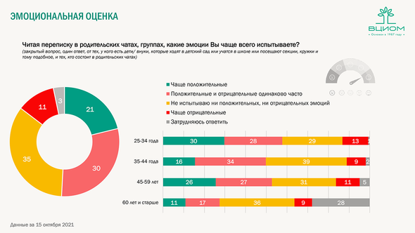 ВЦИОМ провел большое исследование родительских чатов. Любопытное: например, оказалось, что 45% родителей никогда не сталкивались со спорами и агрессией в чатах. 54% же признались, что да, бывает. Но почему? Во время презентации исследования об этом говорили Светлана Бодрунова, руководитель Центра международных медиаисследований СПбГУ, и Кирилл Хломов, старший научный сотрудник лаборатории когнитивных исследований Института общественных наук РАНХиГС, кандидат психологических наук.