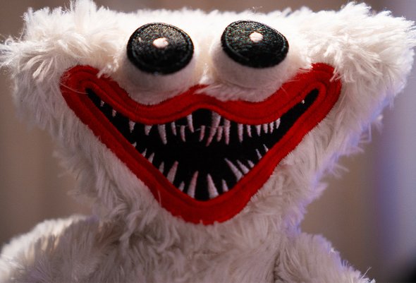 Можете заметить, что по сравнению с прошлыми героями ярко-синий монстрик уже не такой страшный. Мы подробно рассказывали о том, откуда он появился, в этом материале, но, если коротко, он тоже персонаж детской хоррор-игры. Вы точно его видели в виде мягких игрушек и даже могли заметить, что за последние пару лет они успели выйти из моды.