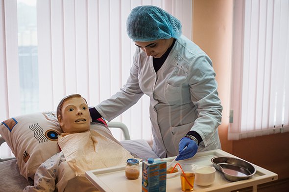 Наш колледж представлял собой маленькое двухэтажное здание с десятью кабинетами, включая учительскую. Возглавляли его три дамы преклонных лет. Первая — директор, педагог по хирургии, медицине катастроф и реаниматологии (при этом она имеет только среднее медицинское образование). Вторая — врач-педиатр, преподавала всё, что связано с детьми. На третьей была ответственность за производственные практики.