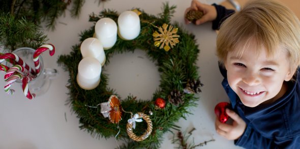 Первый рождественский венок в XIX веке смастерил лютеранский богослов Иоганн Хинрих Вихерн — это было деревянное колесо с 24 свечами, чтобы отсчитывать время до Рождества. Сейчас рождественские венки — неотъемлемый атрибут праздника. Можно смастерить их из обычного картона, сплести из еловых лап или из лозы, а можно купить готовую основу и украсить ее шишками и шарами. Главное — не забыть про бант и колокольчики!