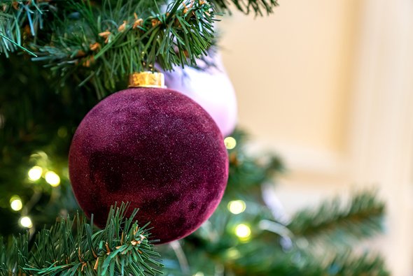 - Готовый шар окунаем в блестки или сбрызгиваем искусственным снегом.