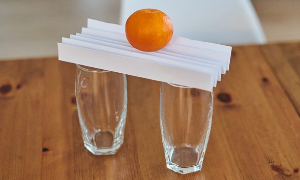 А теперь сложите листы вдоль гармошкой — крупными зигзагами — и попробуйте снова. В такой форме они выдержат нужный вес!