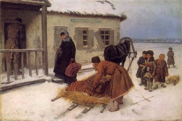 Константин Трутовский. «Приезд учительницы», 1889 год
