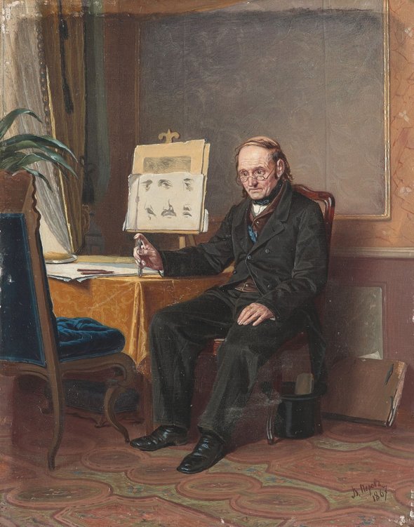 Эта картина написана на деревянной дощечке размером всего 25 на 20 сантиметров. Прообразом главного героя современники называли художника Петра Шмелькова — талантливого живописца, который не сумел построить карьеры и зарабатывал на хлеб уроками. Больше 40 лет он преподавал рисование в кадетском корпусе, надеясь когда-нибудь вернуться в большое искусство, но этого не случилось. Уже после смерти Петра Михайловича был опубликован фототипический альбом его рисунков и эскизов, который впечатлил публику и увековечил Шмелькова в истории живописи как мастера жанрово-сатирической графики.