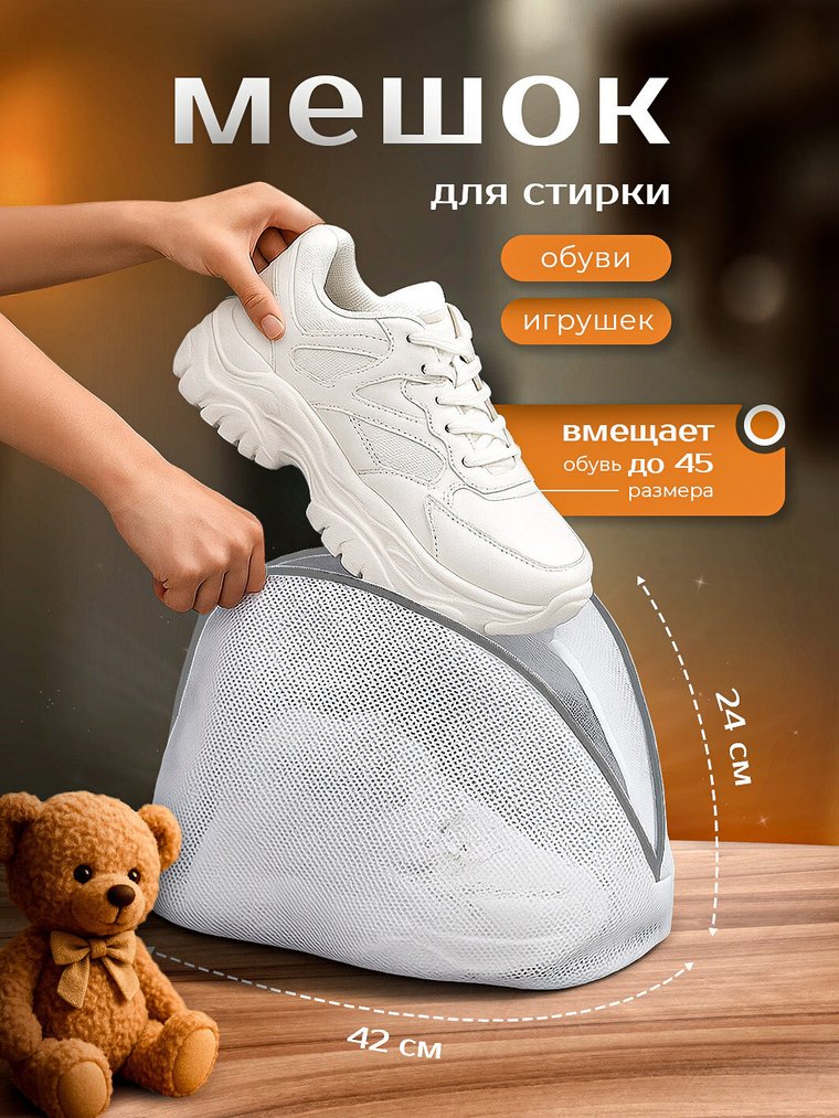 Для машинной стирки подходят в основном текстильные и сетчатые модели, без кожаных элементов и клея, который может размягчиться в горячей воде. Перед тем как закинуть обувь в мешок, лучше вынуть стельки и шнурки — их можно постирать в отдельном маленьком чехле, чтобы они не потерялись. Стирать обувь лучше на деликатном режиме, при низкой температуре и без сильного отжима: так она сохранит форму. Этим же мешком можно пользоваться для стирки деликатных вещей и игрушек.
