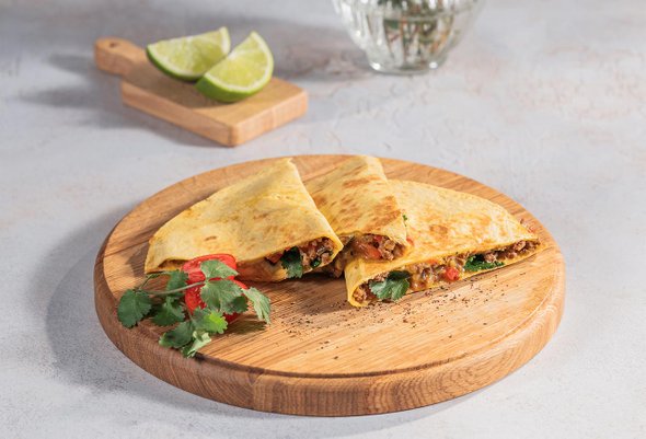 Сладкую кукурузу дети обычно едят банками, а фарш из индейки готовится очень быстро. Объедините это — и получите кесадилью: идеальный обед в школу, который даже с вечера готовить не придется. Всего 15 минут — и сытный перекус готов!