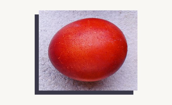 Темно-красные, красные и оранжевые яйца получаются из луковой шелухи. Это один из самых популярных рецептов. Цвет зависит от времени варки — если яйца подержать в воде 10 минут, то они будут оранжевыми, а если 50, то получатся насыщенного красного цвета.