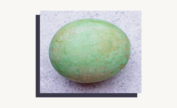Чтобы просто голубые яйца стали драконьими, с помощью кисти нанесите на них белок и по очереди окунайте в хлопья из золотой листовой потали. Уберите лишнее (это можно сделать с помощью зубной щетки) — и готово!